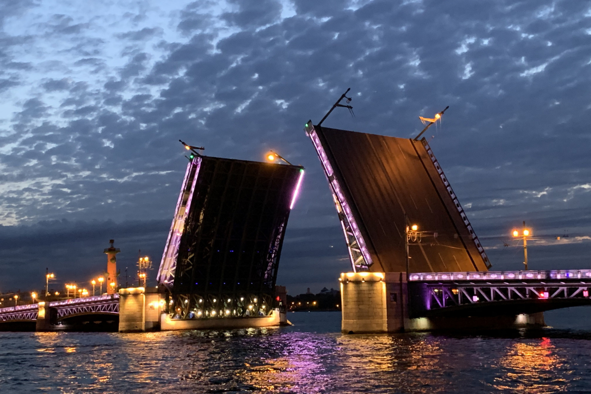 Развод мостов – визитная карточка Петербурга, одно из самых ярких и красивых летних событий. Зрелище сопровождается торжественной музыкой и яркой иллюминацией. Бронируйте ночную прогулку на развод мостов, а мы позаботимся о качественной организации.